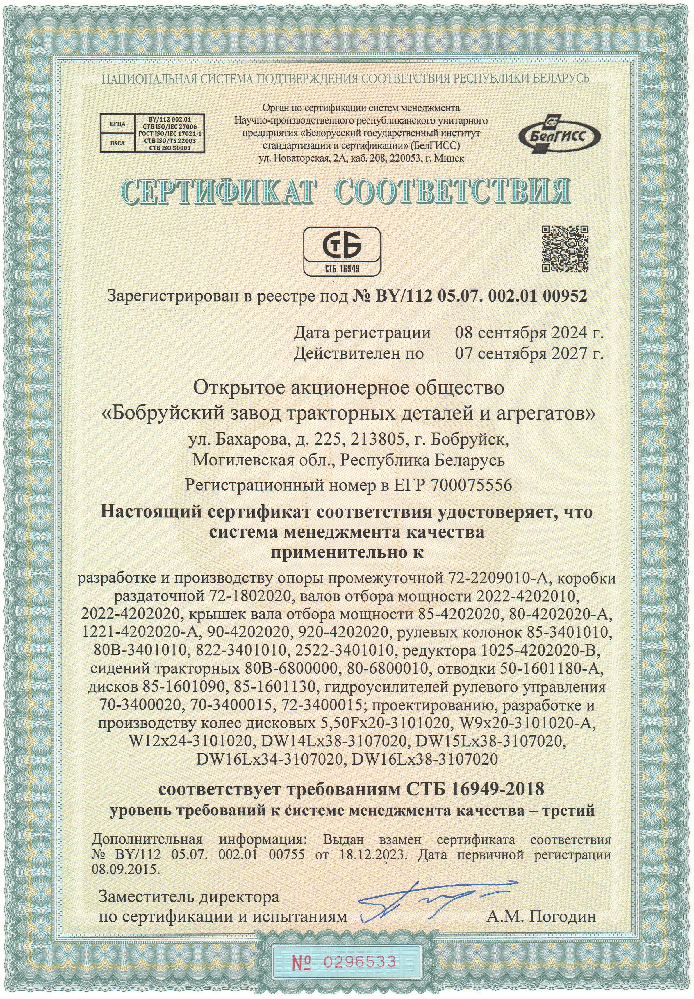2) СТБ 16949-2018 в Национальной системе подтверждения соответствия Республики Беларусь.