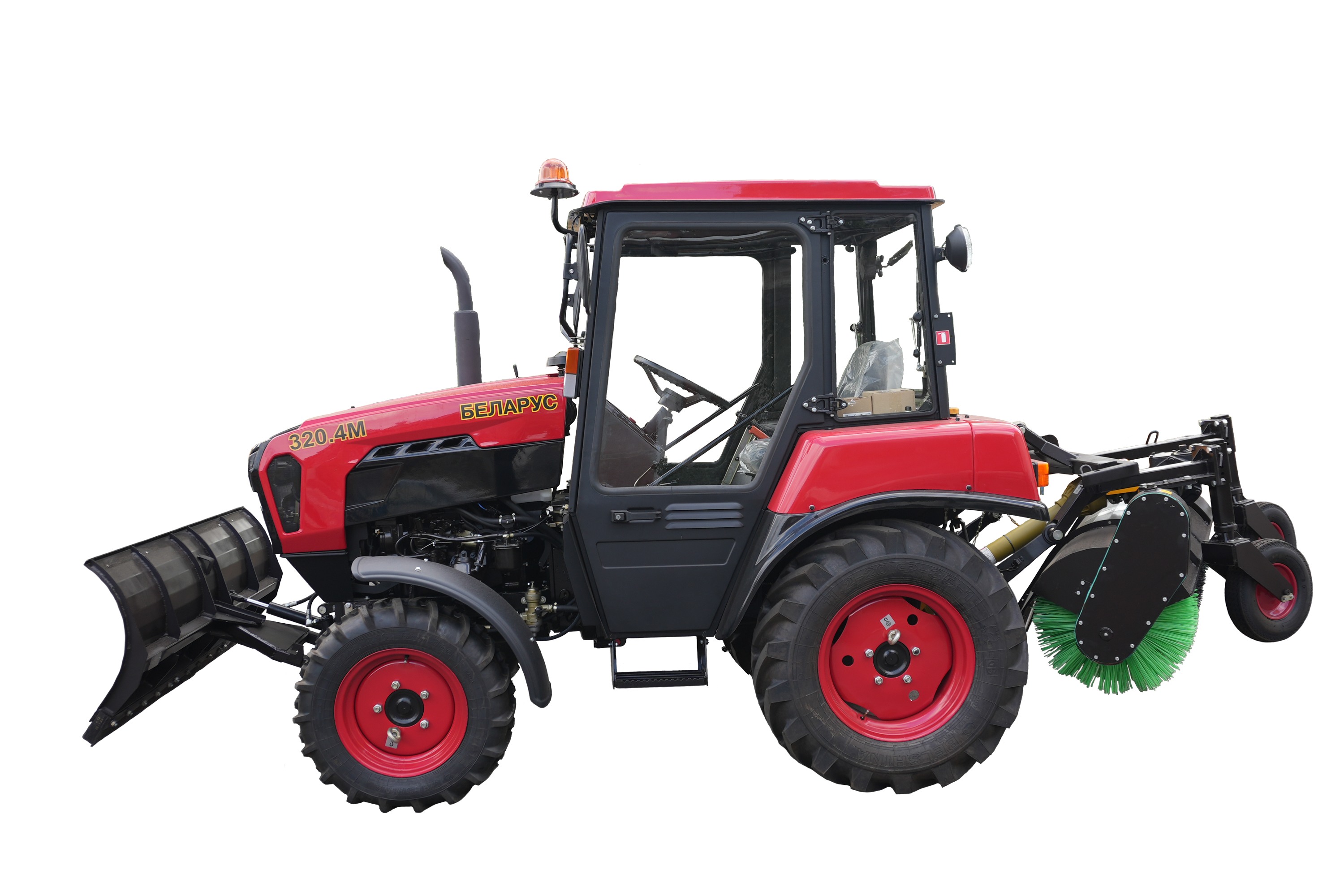 Машина уборочная МУ-320 состоит из базового трактора «BELARUS-320.4М» и закреплённых на нём бульдозерного и щеточного оборудований.